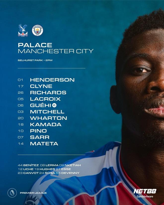 北京时间12月14日22:00,英超第16轮焦点战,曼城作客塞尔赫斯特公园球场挑战水晶宫,本场主裁判为达伦-英格兰,赛前双方首发出炉。