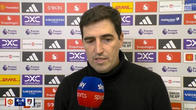 英超第16轮上演了一场进球大战,曼联主场4-4与伯恩茅斯打平。赛后,樱桃军团主帅伊劳拉接受了天空体育的采访。