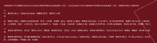 中国香港队省港杯首回合24人名单:梁诺恒重返,陈晋一等中超6将未进终选名单
