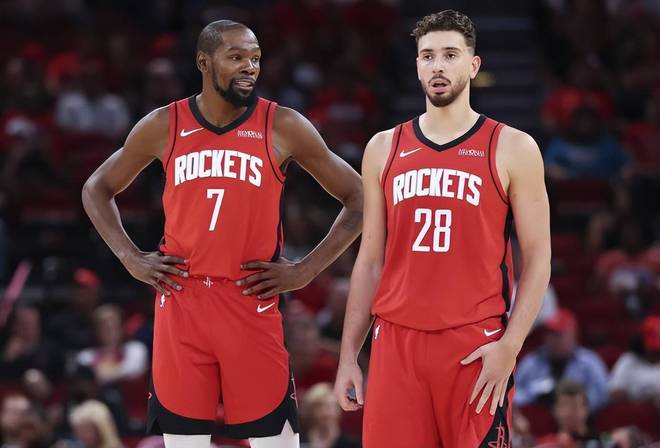 除此之外,火箭队还有一个更大的问题,那就是被公认为是篮球史上最伟大的得分手之一的超级巨星凯文-杜兰特居然缺少出手机会。这位现年37岁的老将自从加盟火箭队以来,虽然进攻数据有所下降,从上个赛季的26.6分下降至本赛季的25.2分,但依然效率极高。他本赛季的投篮命中率为50.9%,三分球命中率为42.9%,罚球命中率为89.6%,完全有机会在职业生涯中第三次入选50/40/90俱乐部。