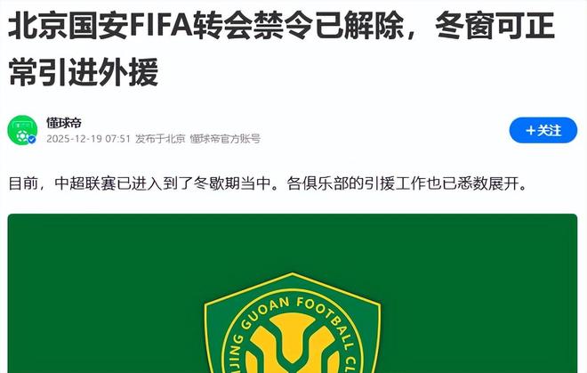 而在此之前,国际足联已经解除了国安的转会禁令。这个信号非常重要,至少说明俱乐部在国际层面的纠纷已经处理完毕,不会再影响球员注册和转会操作。对一家准备在冬窗有所动作的俱乐部来说,这是绕不开的前提条件。