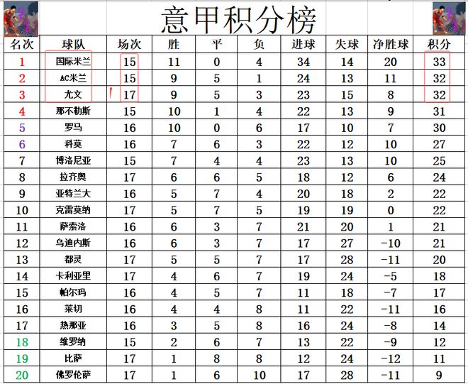 • 意甲最新积分战报尤文3连胜追上AC米兰差国米1分冲进前3