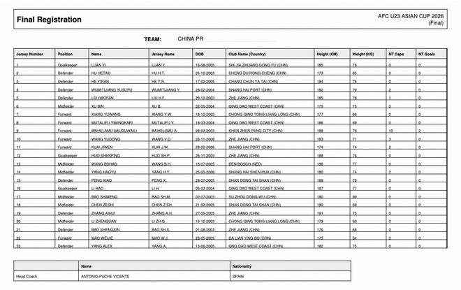 北京时间1月4日,根据亚足联官网的消息,国足征战U23亚洲杯的大名单正式出炉,王钰栋领衔,拜合拉木、蒯纪闻等球员位列其中。新的一年到来后,国足有1名年轻球员连续缺席球队大名单,国脚生涯面临挑战。无缘U23亚洲杯!国足19岁新星失宠了:被邵佳一以及安东尼奥弃用。
