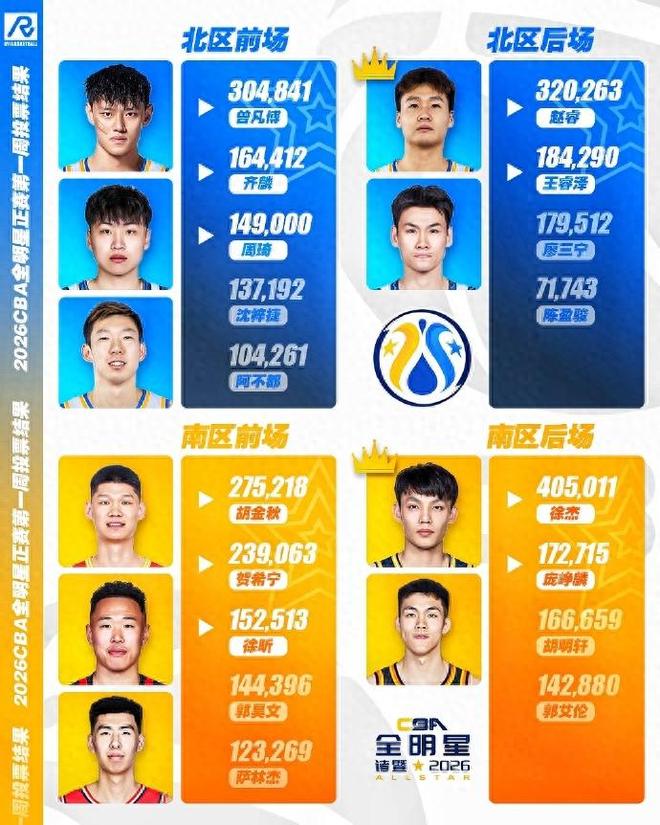CBA全明星投票白热化:徐杰票王,郭艾伦暂排第4,庞峥麟徐昕登榜