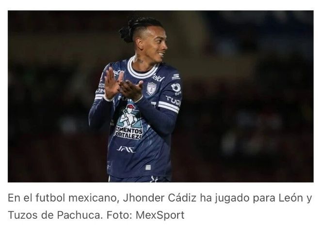 同时,武汉三镇的潜在外援引援目标也有曝光。根据媒体《超级体育报》的报道,三镇有意墨西哥超级联赛球队帕丘卡球员洪德尔-卡迪斯,并提供了一份一年期的租借报价。卡迪斯上个赛季代表帕丘卡出场16场,其中7次首发,贡献3粒进球。